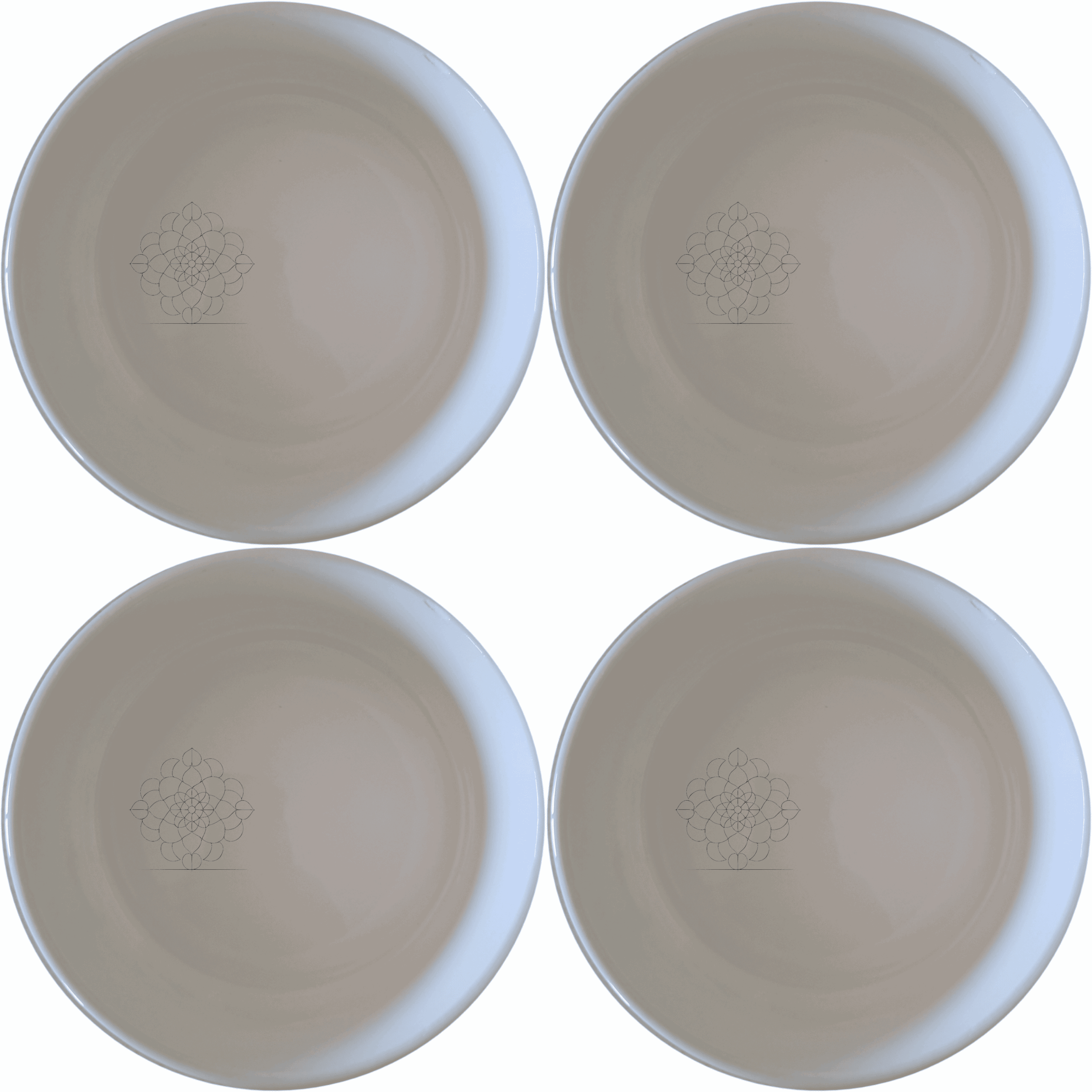 Set of 4 x 12cm White Ceramic round stackable bowls with laser etched design. (Height 5cm)