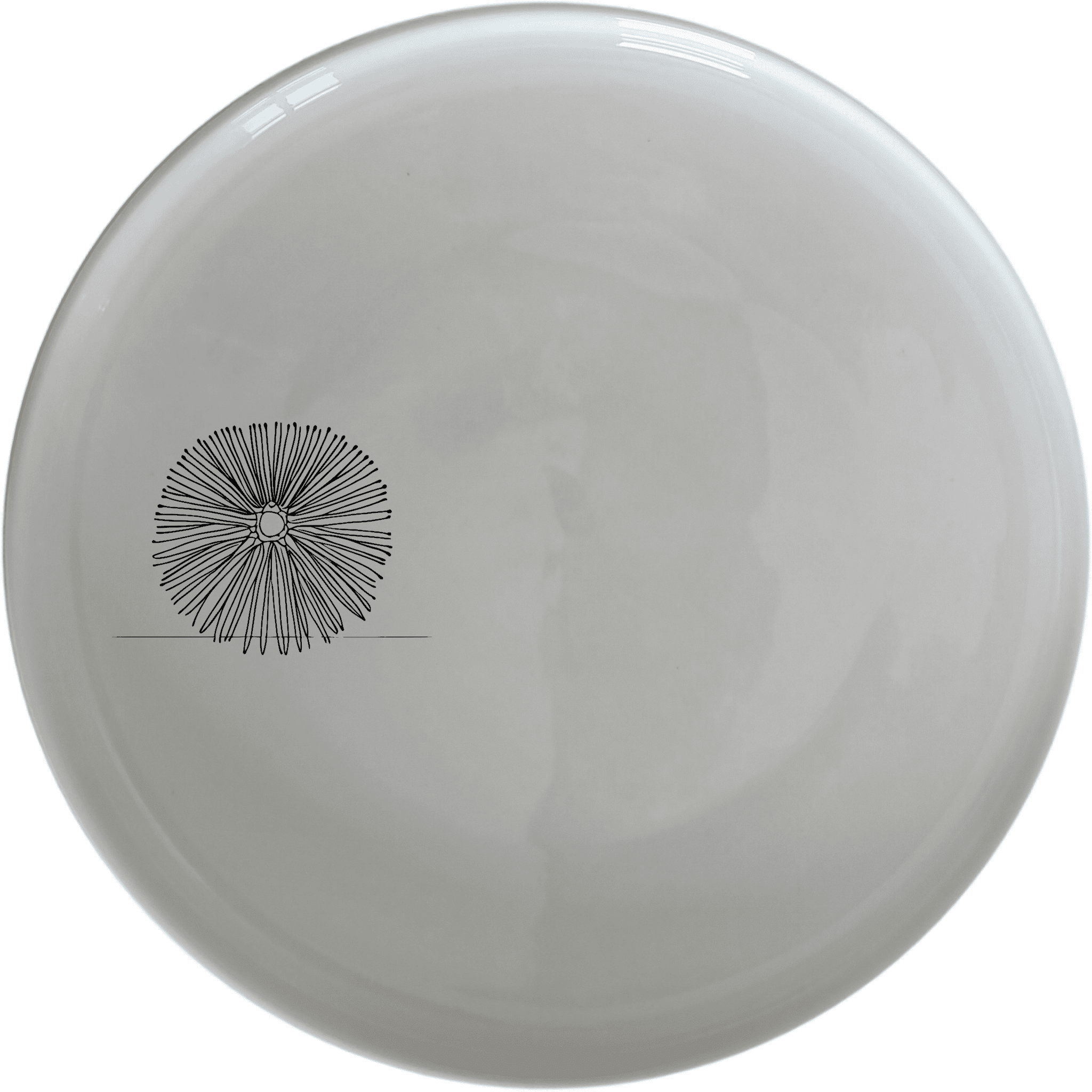 The sea urchin motif is meticulously laser-etched, providing a subtle yet striking visual element that adds depth and texture to the otherwise minimalist design. The white ceramic background enhances the intricate details of the sea urchin pattern, making it a versatile choice that complements both modern and classic table settings.